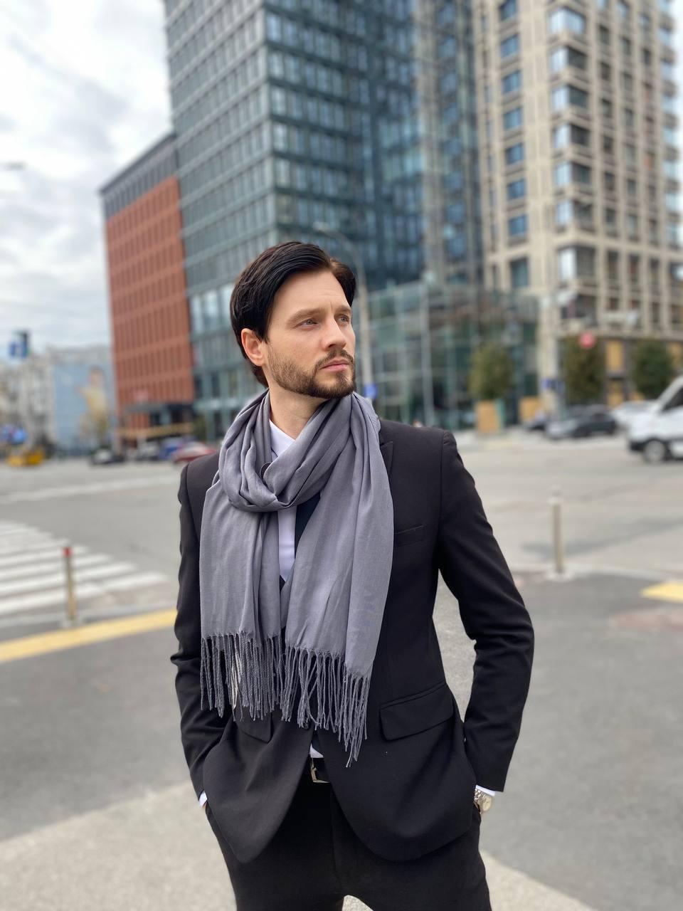 Чоловічий шарф, темно-сірий, великий чоловічий котоновий шарф "Мілан" від My scarf 180 на 60 см